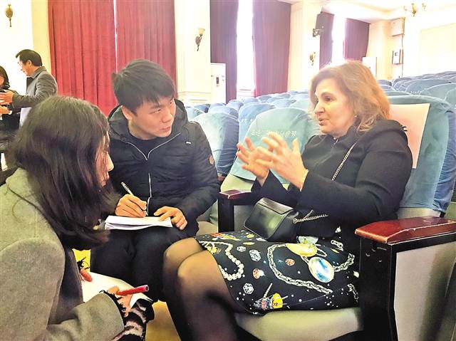 ??? 重慶日報(bào)記者采訪丹妮拉·魯斯。通訊員 歐陽祖兵 攝