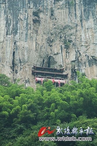??? 看完這兩處懸棺,船繼續前行。當船行至官渡峽中段,一座鑲嵌在懸崖絕壁上的寺廟讓人稱奇。