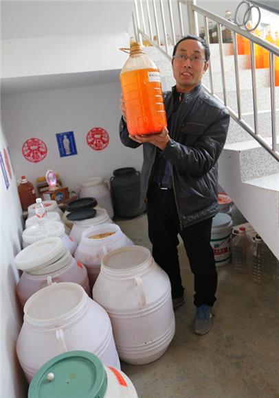 在余和容新建的小洋樓周圍,筆者還發現,他房屋周圍及室內一樓閑置的幾間房間里,全放置著一排排的大塑料缸,打開一聞,一股醪糟的香氣撲鼻而來。