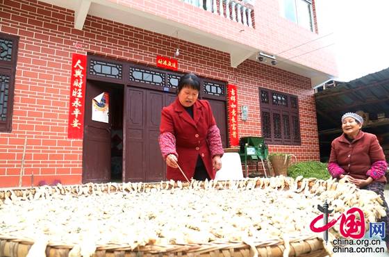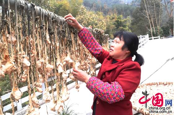 干鹽菜1斤賣10元,肖錦華一年要加工300多斤干鹽菜,除了自己留些吃,在廣東打工的女兒每年要帶走50斤,一年鹽菜收入在2500元,加上賣兩頭肥豬,她家里可增收6000多元。