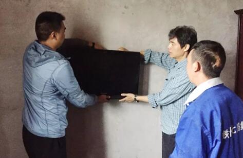 為貧困戶姚明生家安裝電視。通訊員 譚鵬 攝