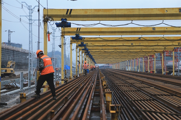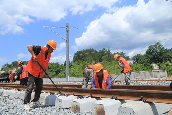 據介紹,中鐵一局集團新運公司黔張常鐵路鋪架分部負責黔張常鐵路重慶段正線鋪軌43.178單線公里的施工任務。施工人員克服軌料運輸距離遠、交叉作業施工多,降雨頻繁等不利因素,實行24小時不間斷施工作業。