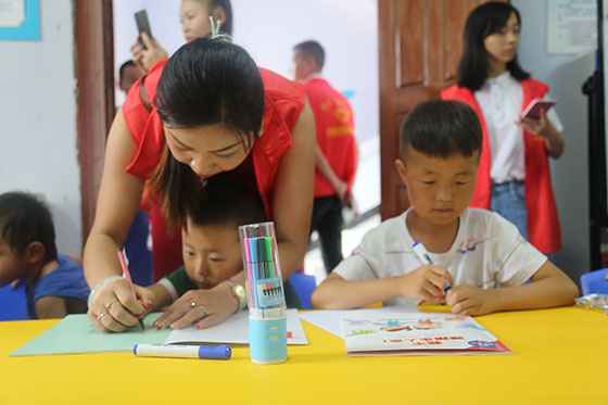 志愿者教孩子們畫畫。特約通訊員 李詩(shī)素 攝