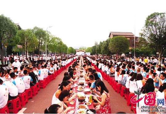 活動中,黔江的土家民俗風情讓青年們在其中樂享歡愉。極具土家特色的千人長桌宴,冉冉的篝火,經典的民族歌舞表演和激情的土家擺手舞,組委會更為本次活動恰逢生日的6位單身青年過了一個集體生日,千人齊唱生日快樂歌,將現場氣氛推向高潮。