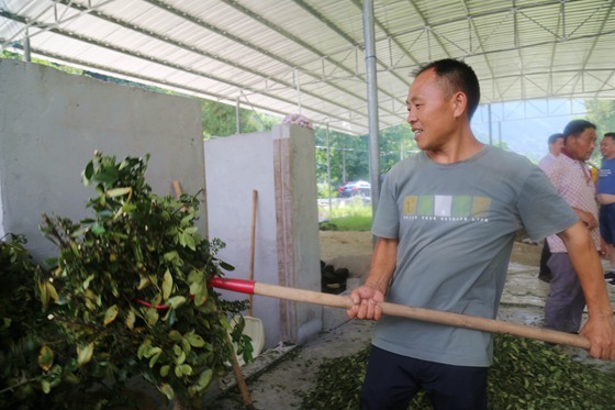 鄭仁超將鮮花椒用叉送到烘烤間。特約通訊員 李詩(shī)素 攝