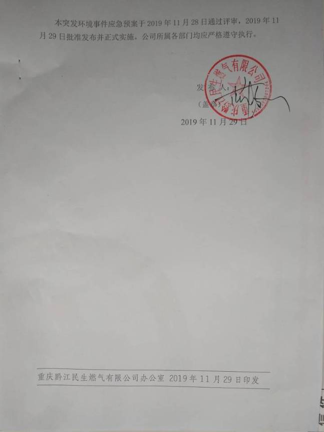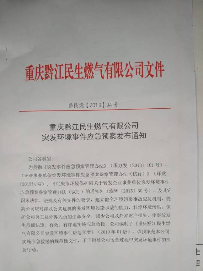 重慶黔江民生燃氣有限公司突發環境事件應急預案
