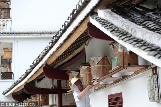 ↑2020年6月6日,重慶市黔江區馮家街道寨子社區官村古寨村民在養蜂。CICPHOTO/楊敏 攝