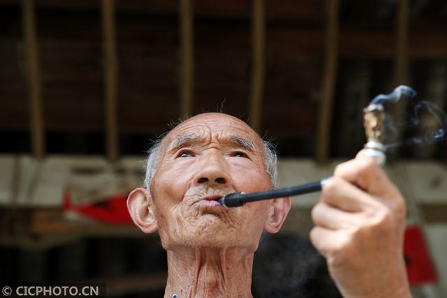 ↑2020年6月6日拍攝的重慶市黔江區馮家街道寨子社區官村古寨83歲的村民謝慶錫。CICPHOTO/楊敏 攝