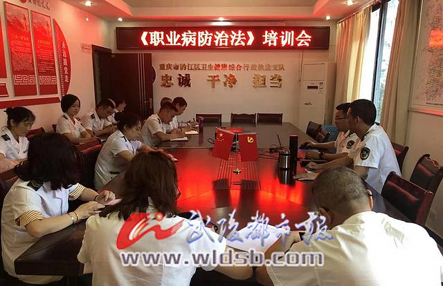 本報訊(記者 王巧西 文/圖)隨著機構改革、單位職能的轉變,黔江區衛生健康綜合行政執法支隊承擔了職業衛生監督執法工作。近日,為讓全體監督執法人員了解職業病防治監督管理工作,該支隊在四樓會議室開展職業衛生監管范圍和職業病概念及放射防護相關知識培訓。培訓由該支隊職業健康執法大隊大隊長任偉主講,全體衛生監督執法人員參加。