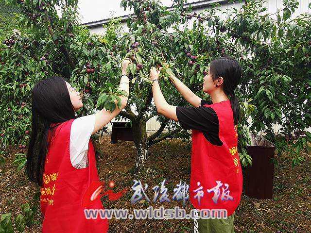 志愿者幫助采摘脆紅李