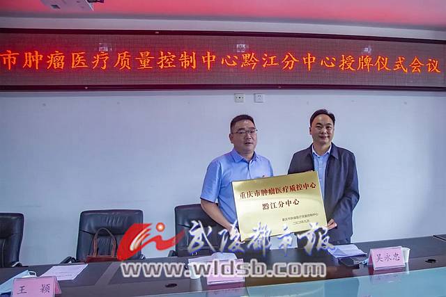 儀式上,吳永忠代表重慶市腫瘤醫(yī)療質(zhì)控中心授牌,程舉光代表黔江分中心接牌。
