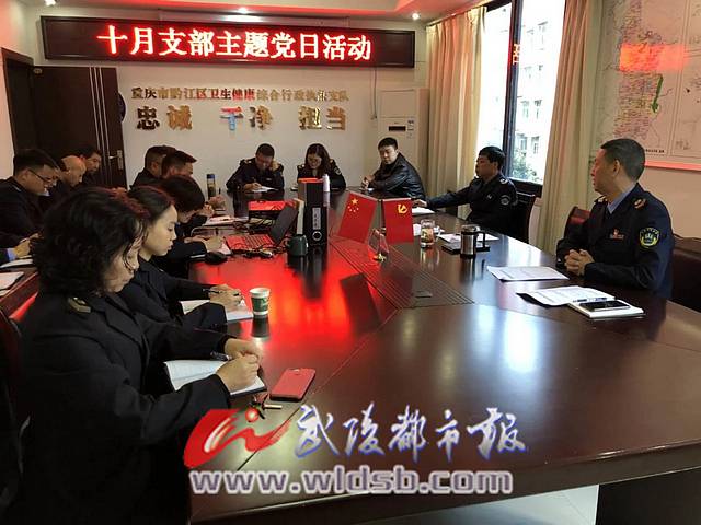 本報訊(記者 李艷 文/圖)近日,區衛生健康綜合行政執法支隊黨支部開展十月主題黨日活動(如圖),活動由支部書記陳雙勝主持,支部全體黨員以及單位全體職工參與活動。