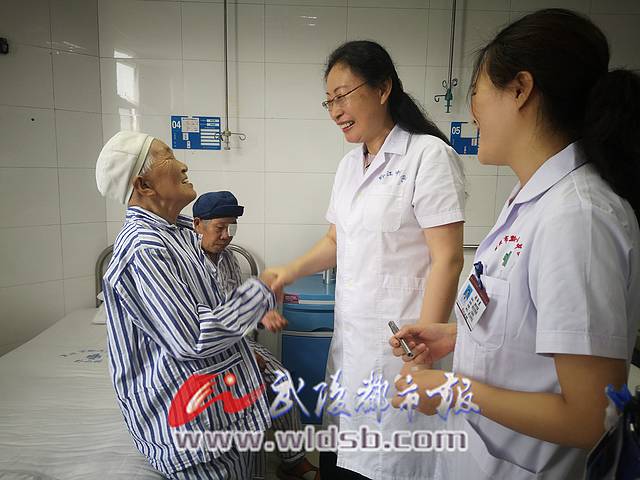 10月22日上午,在黔江區中醫院,一位在21日做完手術并重見光明的黔江區白內障患者,開心地握著山東省日照市眼科專家的手,一遍又一遍說著感謝的話語:“感謝你們不遠千里,給我們帶來了光明?!?/p>