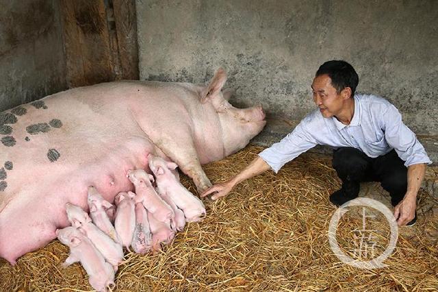10月29日,村民李賢余在觀察小豬崽的生長情況。