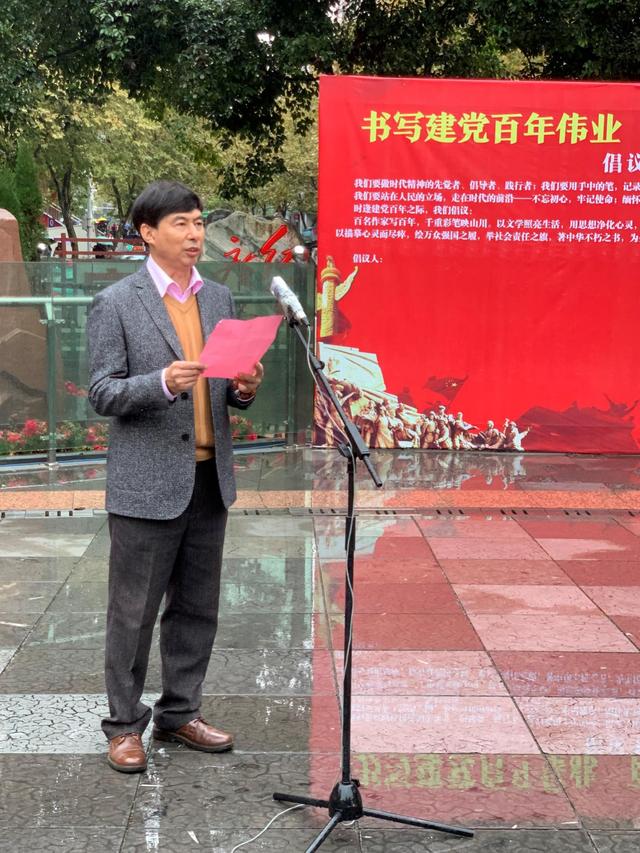 時逢建黨百年之際,我們倡議:百名作家寫百年,千重彩筆映山川。以文學照亮生活,用思想凈化心靈,以啟迪人生為神圣使命,用善良編織人性美好,不以私欲而嘩眾取寵,應以描摹善行而盡瘁,承革命烈士遺志,享幸福不忘先賢,舉作家責任之旗,繪萬眾強國之履,為生民立命執筆,著中華不朽功績。