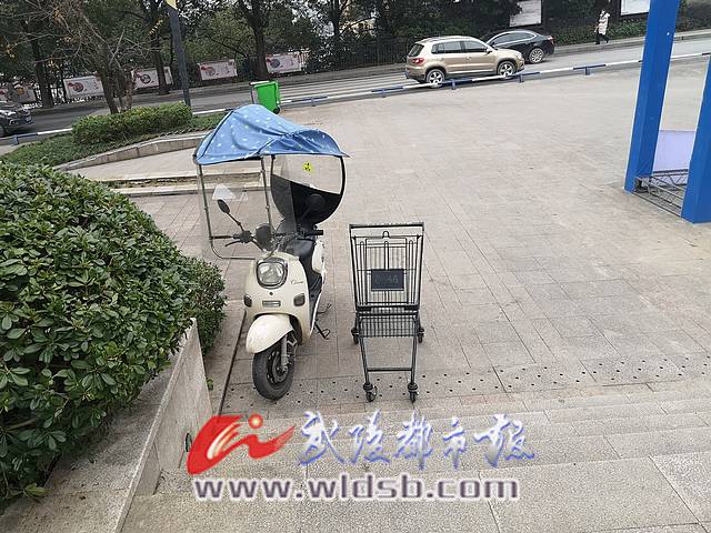記者就此事走訪了黔城各大超市,發現亂放購物車的現象不在少數。在三臺山一超市,記者看到有顧客買完東西后,把購物車推到了外面的廣場上,然后提了購物車里的東西就走。購物車孤零零地留在了廣場上無人問津。而在大十字一超市,有顧客推著購物車走出超市后,沒把購物車放到固定的歸還處,而是隨意丟棄在鬧市。