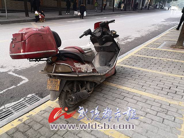 為此,記者找到劉女士所指的“僵尸車”,發(fā)現(xiàn)一輛摩托車停在公共車位上,并未按指向停車,并且占用了兩個(gè)公共車位,其車身已有部分損壞,車主不見蹤影,車胎已經(jīng)沒氣,整個(gè)車身殘破不堪。路過的一位市民說,這輛車已經(jīng)停放了很長時(shí)間,希望能夠盡快清理。