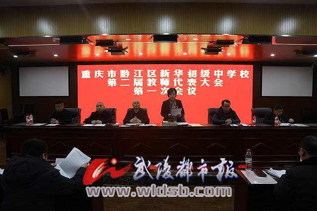 本報訊(通訊員 姚旭 文/圖)12月26日,黔江區新華初級中學校第二屆第一次教師代表大會在新華中學會議室召開。會議由校工會主席覃敏主持,學校支部書記、校長王安章,53名教師代表和7名列席人員參加會議。