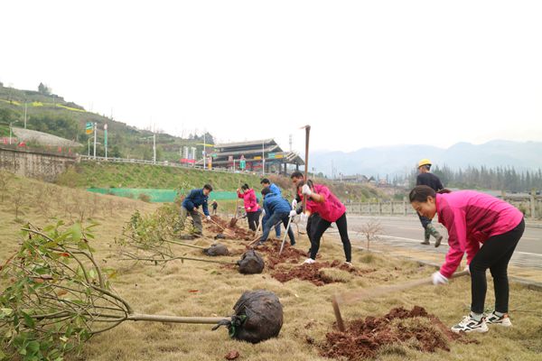 植樹現場,各人員分工明確,刨坑、培土、澆水,忙得不亦樂乎。植樹活動,共栽植紅葉石楠35棵,每一棵樹苗,都被寄予厚望,就像黔江的旅游事業,不斷扎根泥土,汲取養分,茁壯成長,總有一天會枝繁葉茂。綠水青山就是金山銀山,環境與資源的保護一直是濯水景區的重點工作,積極踐行人與自然和諧發展的精神理念,弘揚生態文明,共建綠色家園。作為國家5A級旅游區,濯水景區將把生態旅游進行到底,為廣大游客創造更加優良的旅游環境。
