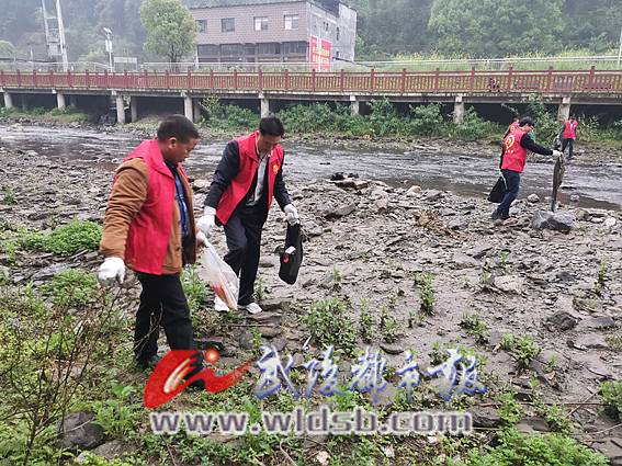 采訪當天,記者在白石鎮集市上看到,身穿紅色馬甲的志愿者和當地群眾一起,有的清掃路面,有的撿拾垃圾,有的清理路邊雜草枯枝。冒著細細微雨,大家干勁十足。