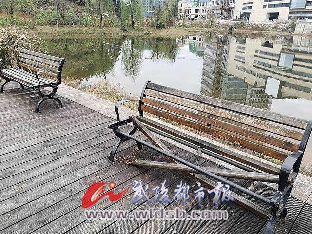 記者在天生湖公園看見,只見沿著湖邊的鐵架木板椅子都有損壞,輕的木板翹起,還有的椅子已經(jīng)“殘廢”(如圖),如果要在靠近湖邊的地方坐坐,確實不好找地方。萬女士說,她在早上跑步時準(zhǔn)備找個地方坐一下,看看湖邊風(fēng)景,結(jié)果找了一圈椅子都是“缺胳膊少腿”的。