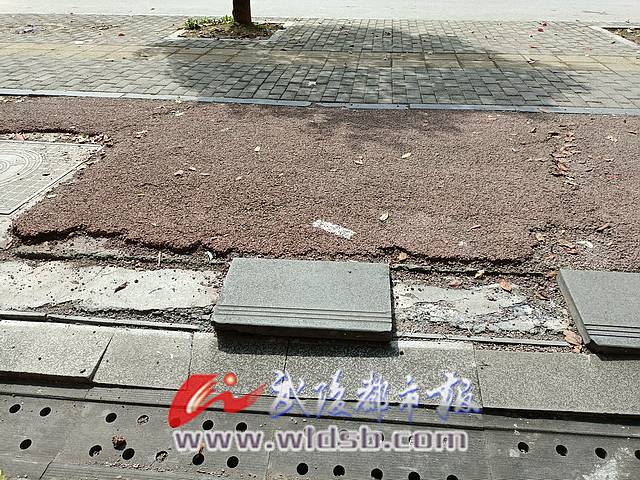 “這里的人行道破損很久了,不知道為什么一直沒(méi)人來(lái)管,這里離學(xué)校近,人流量本來(lái)就大,瓷磚松動(dòng)后長(zhǎng)期不管,久而久之就不見(jiàn)了蹤影,尤其是老人和小孩不注意很容易摔倒。希望相關(guān)部門能早日管管此事,給市民的出行創(chuàng)造一個(gè)好的環(huán)境?!弊≡诟浇脑扛嬖V記者。
