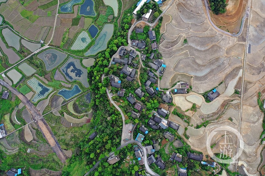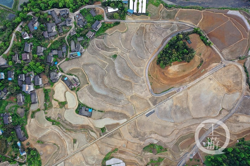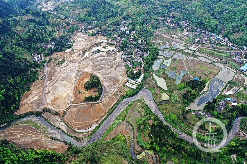 4月16日,即將改造完工的重慶市黔江區太極鄉李子村高標準農田,與山巒、民居、河流、公路相間,美如畫卷。
