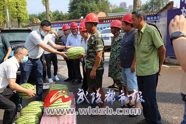 在黔江民族職業教育中心新校區,工人們頂著高溫烈日開展校門、道路等施工項目的掃尾工作。慰問組與各項目管理人員和一線工人進行深入交流,了解項目的最新進展,對他們戰高溫斗酷暑、為安全建設作出貢獻表示感謝。活動中,慰問組把西瓜、礦泉水、藿香正氣液等防暑降溫用品送到建筑工人手中,讓工人們感受到烈日酷暑下的清涼和關心。