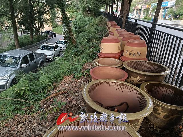 本報熱線79081234報道(記者 田丹 實習生 梁靖晗 文/圖)近日,熱心黔城市民姚女士致電本報熱線稱:“上三臺山的老公路,不知道是誰在公路坎上堆放了很多大花盆。本來這里就是一個大斜坡,萬一花盆滑下去砸到了公路上的行人和車輛就不好了。希望有關部門能管管此事。”