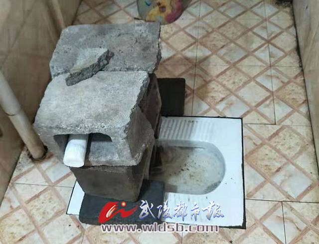 張先生帶著記者來到他們家的廁所,只見廁所的排水口處用水泥磚蓋了幾層。他說:“這也是沒有辦法的辦法,只有用磚把廁所管子堵住,不然雨水冒出來的速度更快。”