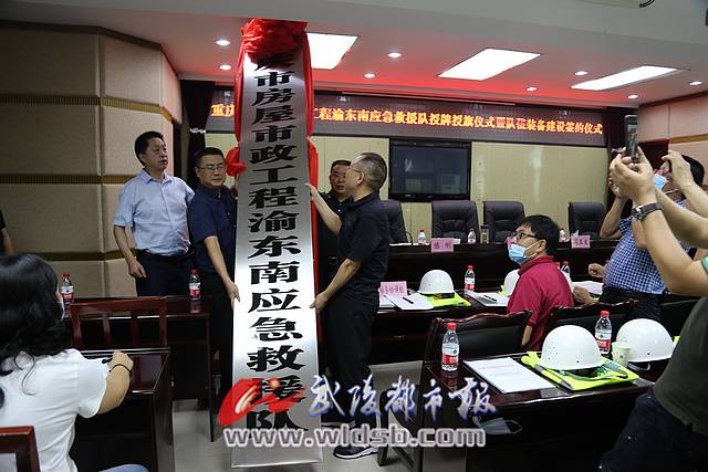 簽約儀式上,區(qū)住建委與黔江八方公司簽訂政企共建協(xié)議書;區(qū)住建委和區(qū)應(yīng)急管理局共同為重慶市房屋市政工程渝東南應(yīng)急救援隊(duì)授牌、授旗。
