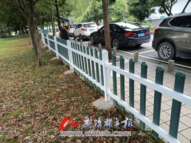 日前,記者在現場看到,原先散落在綠化帶里的圍欄碎片已經不見了蹤影,花壇的缺口已經重新補上,嶄新的圍欄在陽光底下格外顯眼。