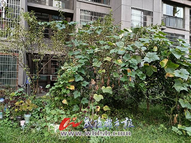 “居住區綠化屬于城市綠化的一部分,居民區內種菜不能等同于綠化。”業主張先生說,種植戶自認為這是綠化環保,其實是混淆概念。他們種的南瓜藤把攀附在門外的樹上,害得底樓住戶的我們室內光線都不好了,肥料味還吸引了昆蟲,物業真該好好管一管!”