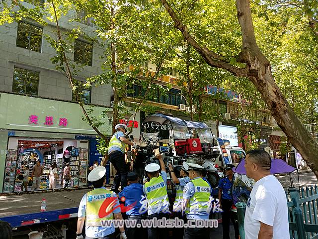 記者在大十字商圈看到,交警和城管執法人員沿解放路兩側進行聯合執法,著力解決電動車占用機動車道和禁停街道的違法違規行為,整治行動中,執法人員重點對各大商場門前及周邊主路,對亂停亂放的電動車主進行了告知,對沒有人認領的電動車,進行了暫扣處理。