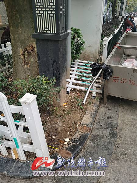 10月26日上午,記者在大什字購物廣場發現邊上的花壇圍欄個別固定樁脫落,圍欄受損現象,而且花壇里還有很多隨意丟棄的垃圾。