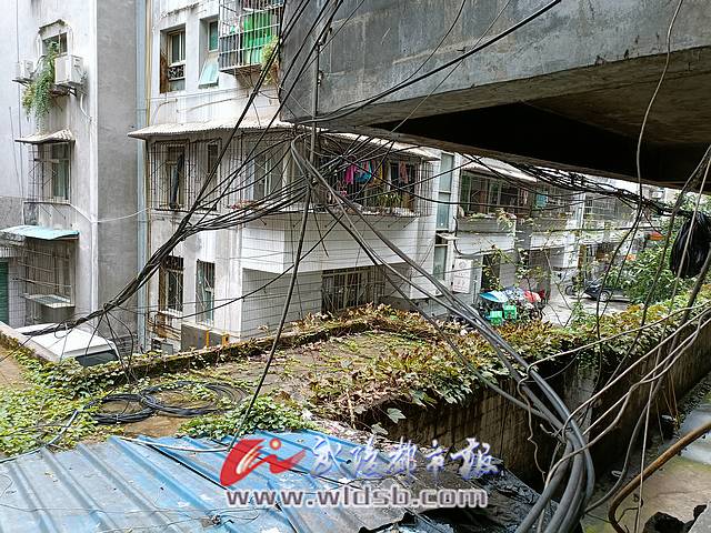 “你看那里的管線直接長期泡在了水里,萬一管網(wǎng)漏電可怎么辦?”冉先生指著天樓頂上的管網(wǎng)告訴記者。“這些管線要是可以像新型小區(qū)那樣規(guī)范化就好了。”