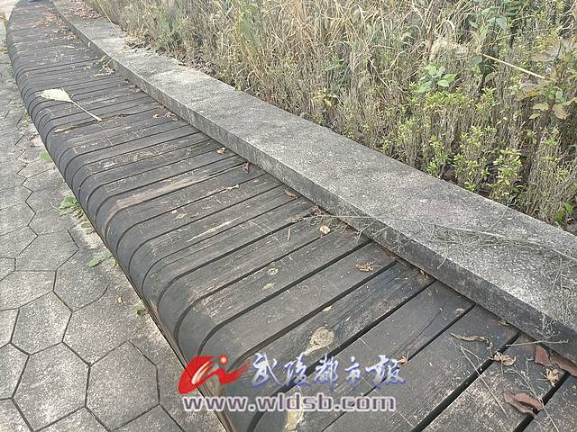 記者在現場看到,萬麗湖公園附近的幾把長座椅都是木質結構的,由于長期日曬雨淋,座椅已經開始發黑(如圖),不少來此游玩的市民或用紙張擱置上面了再坐下,或直腳踩在椅子上。