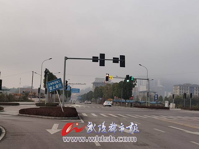 記者趕到現場看到,該處位于巴楚大道與桐坪路交匯處的紅綠燈旁,一塊三四米高的交通提示牌傾斜(如下圖)。