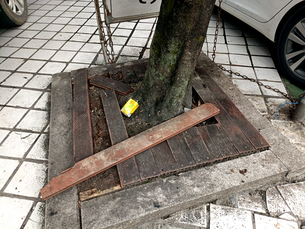 嚴重損毀的樹池蓋。