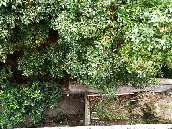 記者在白先生的住處看到,麗都花苑小區的綠化帶就建在他家的房屋后面,并且相隔不到3米距離。綠化帶里的這些香樟樹已長成直徑約40公分的大樹,并且樹與樹之間的距離很近,樹枝橫七豎八地向外擴展生長,不少樹枝已翻越過圍墻,地面上確實掉落很多樹葉和枯枝。這些綠化樹的樹枝長出圍墻,影響的不止是白先生一家,相鄰的還有6戶家庭也同樣受到采光等影響。