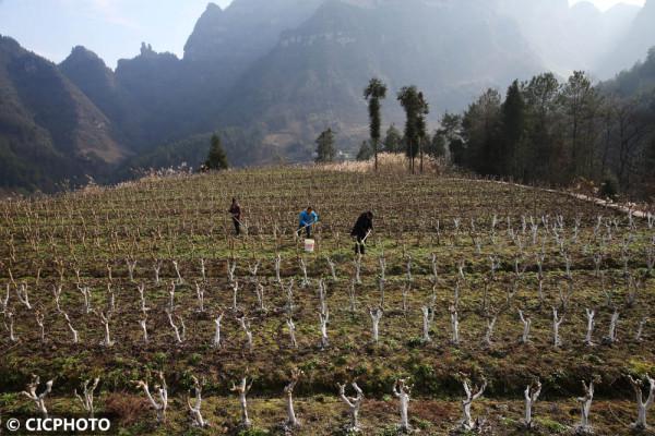 入冬后,重慶市黔江區積極組織村民對桑園進行冬管,桑園里到處都是勞動的身影。