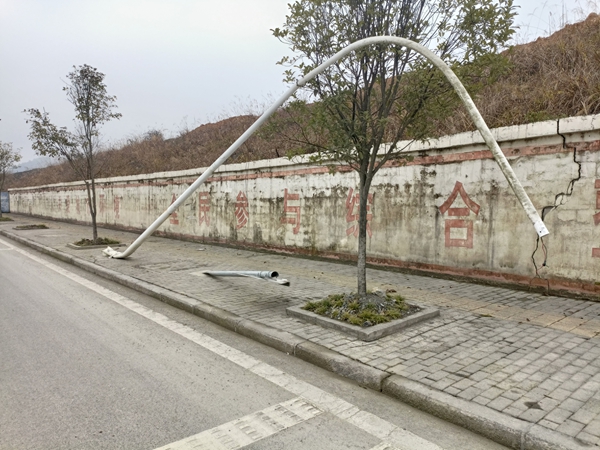 本報熱線79081234報道(記者 田丹 文/圖)近日,黔城熱心市民陳先生致電本報熱線反映:從青杠到金溪的二級公路兩邊,好幾處路燈的電桿都橫倒在人行道上了,燈也不亮了,對夜間行車視線影響很大,希望有關部門能管管此事,早日把路燈修好,還市民一個安全的出行環境。