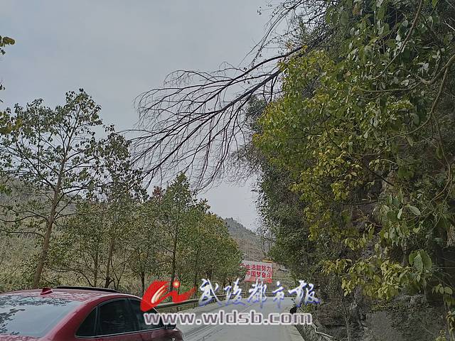 “這棵行道樹掛在公路上空快一個月了,是前段時間下雨造成的。這條道路是黔江通往金溪鎮(zhèn)方向的必經(jīng)之路,每天來往的車流特別大。萬一哪天樹枝風(fēng)干了,掉下來很容易造成交通事故,還是希望有關(guān)部門能早日出手管管此事,還市民一個安全的出行環(huán)境。”住在附近的余先生告訴記者。