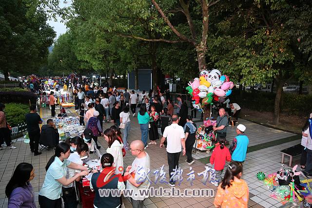 當天19:00,夜幕降臨,華燈初上。在體育館附近的夜市人潮涌動,摩肩接踵,玩具、鞋包、首飾等各類商品擺滿了貨架,攤主們賣力叫賣、推介自己的商品,引來了大量市民駐足挑選購買,現場熱鬧非凡。