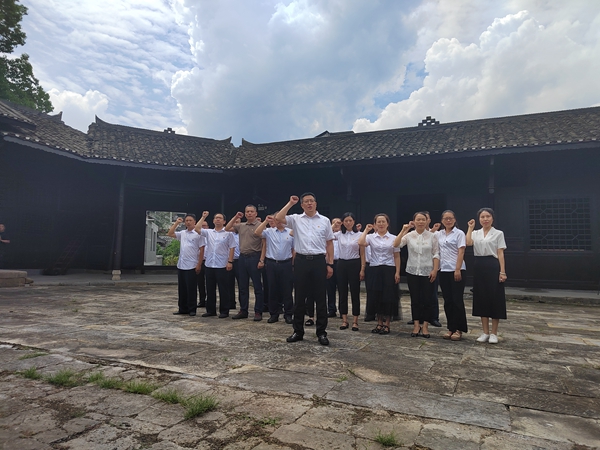 學習會后,黨支部組織全體黨員、入黨積極分子和青年志愿者來到萬濤故居,在革命先烈萬濤同志的塑像前,開展緬懷先烈活動。廣大黨員同志鄭重地舉起右手,面對黨旗,重溫入黨誓詞(如圖)。大家參觀了萬濤故居,了解萬濤同志的生平事跡和革命故事,先烈的堅定信仰和堅強斗志深深地感染著大家。黨員同志紛紛表示,要不忘初心,牢記使命,為黨的事業不懈奮斗。