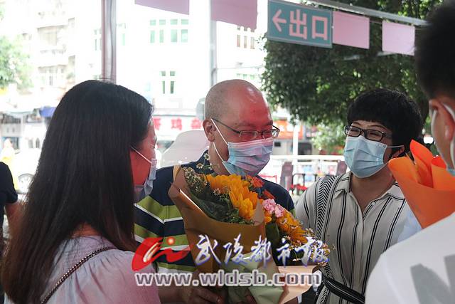 見到梁躍波,大家一擁而上,鮮花、掌聲、擁抱、歡迎詞……向他撲面而去。中心醫院黨委書記程舉光親手把鮮花送到他手上,對他說:“辛苦了,歡迎回家!”