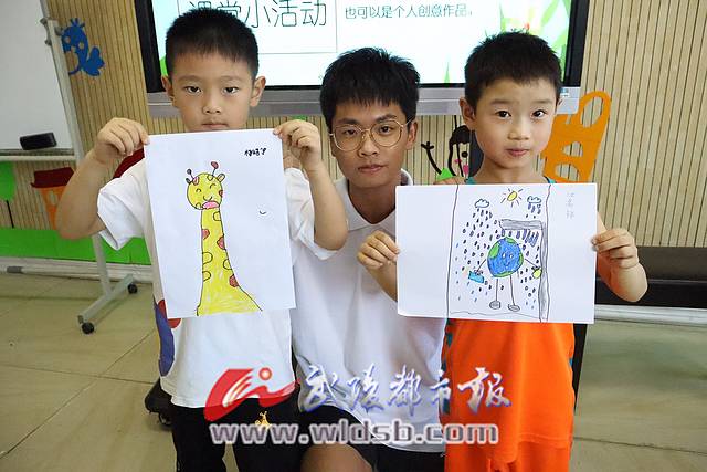 在環保小課堂上,團隊成員向小朋友們普及了“雙碳”戰略、生態文明建設等知識,并從衣、食、住、行方面具體提出行動倡議。實踐團隊通過兩個環保小游戲,利用空塑料瓶和廢紙,進一步加深了小朋友對于綠色發展的認識。最后,實踐團隊組織青少年以繪畫的形式,展現關于綠色發展的奇思妙想。
