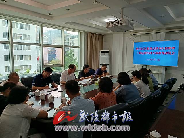 本報訊(記者 徐朝政 文/圖)9月19日,黔江區召開區屬重點國企紀檢監察干部紀律作風專項教育動員會(如圖),區紀委監委駐區財政局紀檢監察組負責人主持會議,區城投集團、鴻業集團、峽谷城文旅集團的紀檢監察干部參加會議。