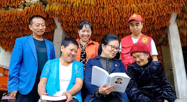 近日,水田鄉水田社區2組,該鄉黨員志愿者為群眾宣講《習近平談治國理政》第四卷。近來,該鄉以院壩宣傳、入戶宣講等方式,向群眾宣傳黨的創新理論,不斷引發群眾的情感共鳴、理論認同,有效推動黨的創新理論“飛入”尋常百姓家。