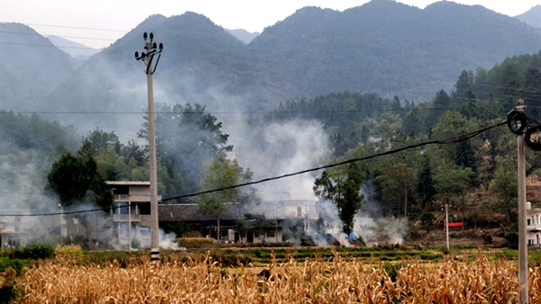 眼下正是稻子收割季節,日前,記者在走訪時看到,部分村民稻子收割后就隨意在山邊田間焚燒稻草,也有市民將地里割下的雜草曬干了進行焚燒處理。